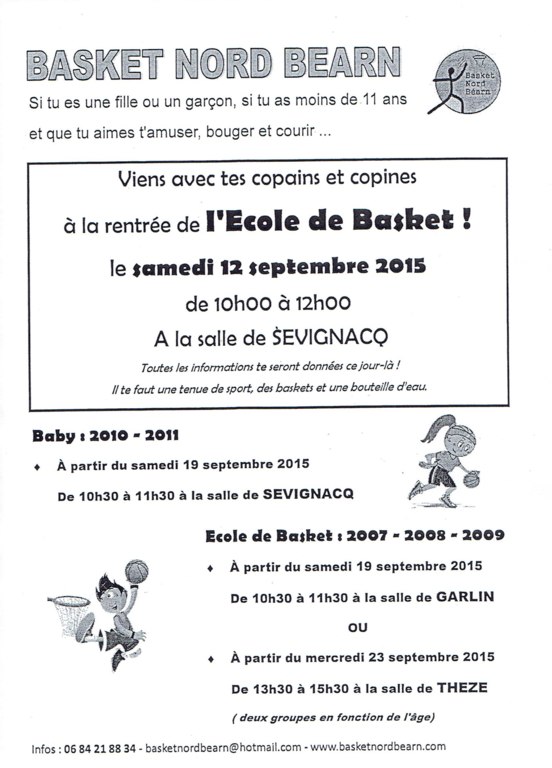 Si tu es une fille ou un garcon et que tu aime t'amuser, bouger et courir... rejoinds nous le 12 Septembre de 10 h à 12 h pour découvrir le basket .