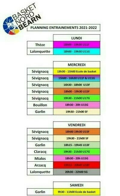 🚨 Voici le planning des entraînements ‼️