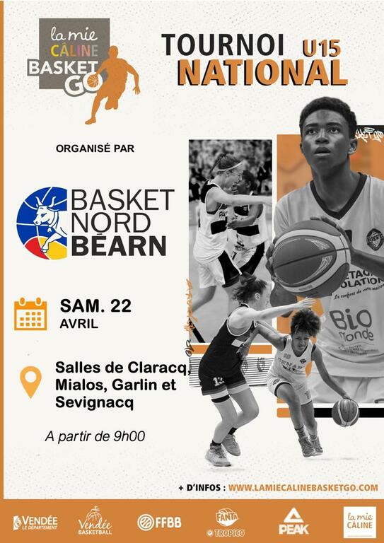 Le club de Basket Nord Béarn organise pour la 12ème année consécutive un tournoi ouvert aux U15 féminin et masculin, le samedi 22 avril 2023.
