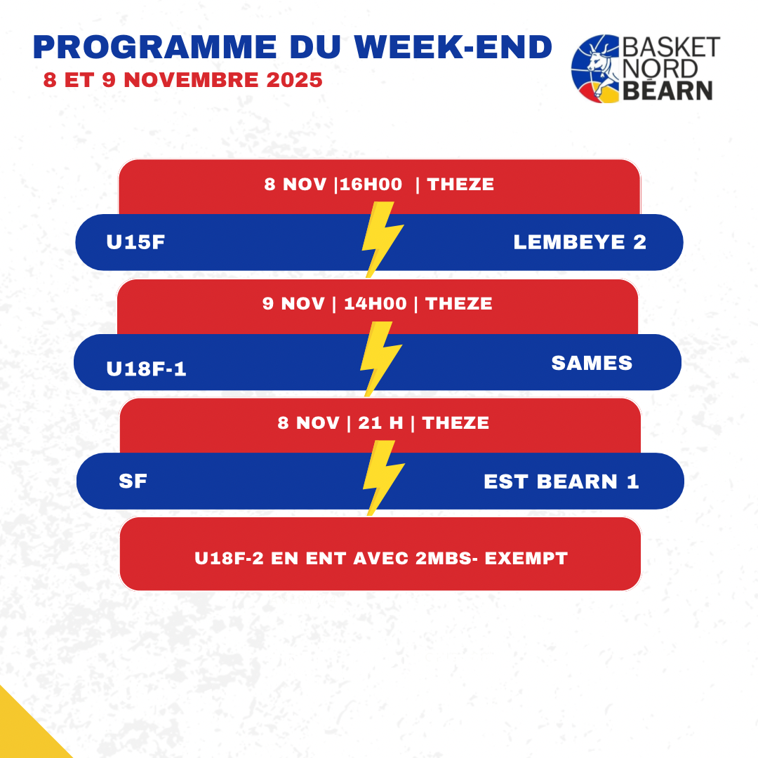Programme des matchs du week-end du 15 et 16 Novembre